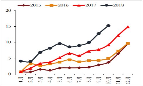 國內新能源汽車產量節節攀升(萬輛)